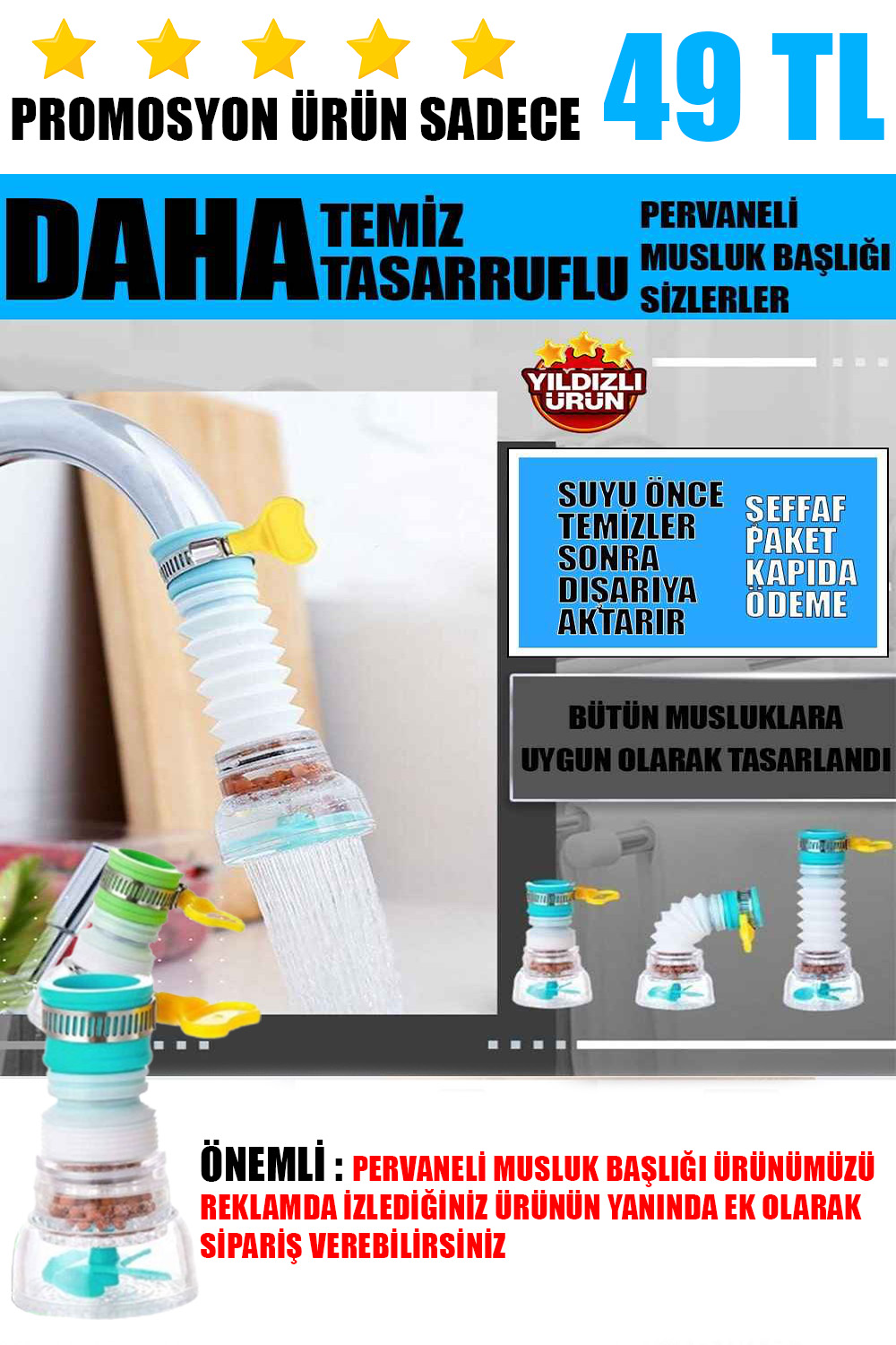 1 Adet PERVANELİ MUSLUK BAŞLIĞI -